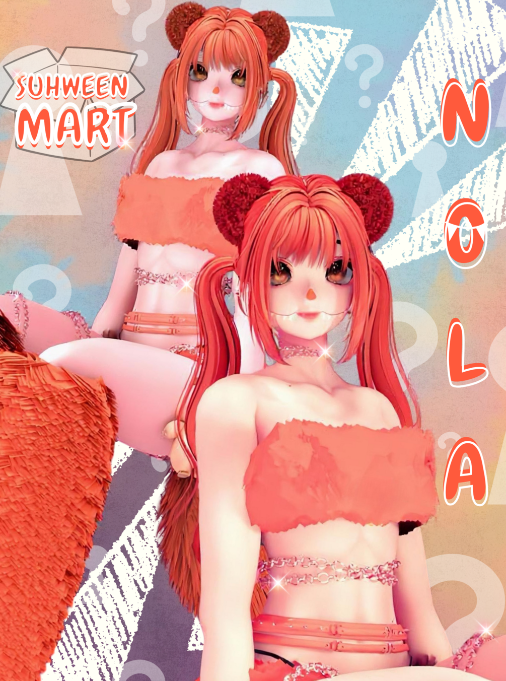 Nola is a plush-inspired freebie built for PC+ with full facetracking. She comes with GoGo Loco support and hue swaps so you can be any shade of plush you like- plus an exclusive 24K Gold mode.